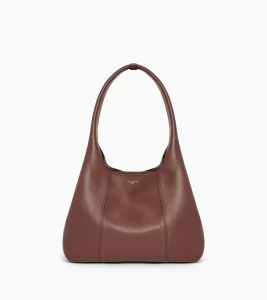 Características: Esta bolsa de ombro, de tamanho médio, em couro granulado com linhas sem cortes, apresenta os charms T dourados claros característicos da marca. Pode ser usada na mão ou no ombro.